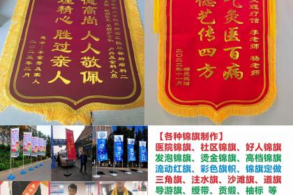 【锦旗】:医院锦旗、社区锦旗、好人锦旗、旗帜、袖标、三角旗、发泡锦旗、烫金锦旗、流动红旗、彩色旗帜、道旗、刀旗、注水旗、沙滩旗、导游旗、绶带、贡缎